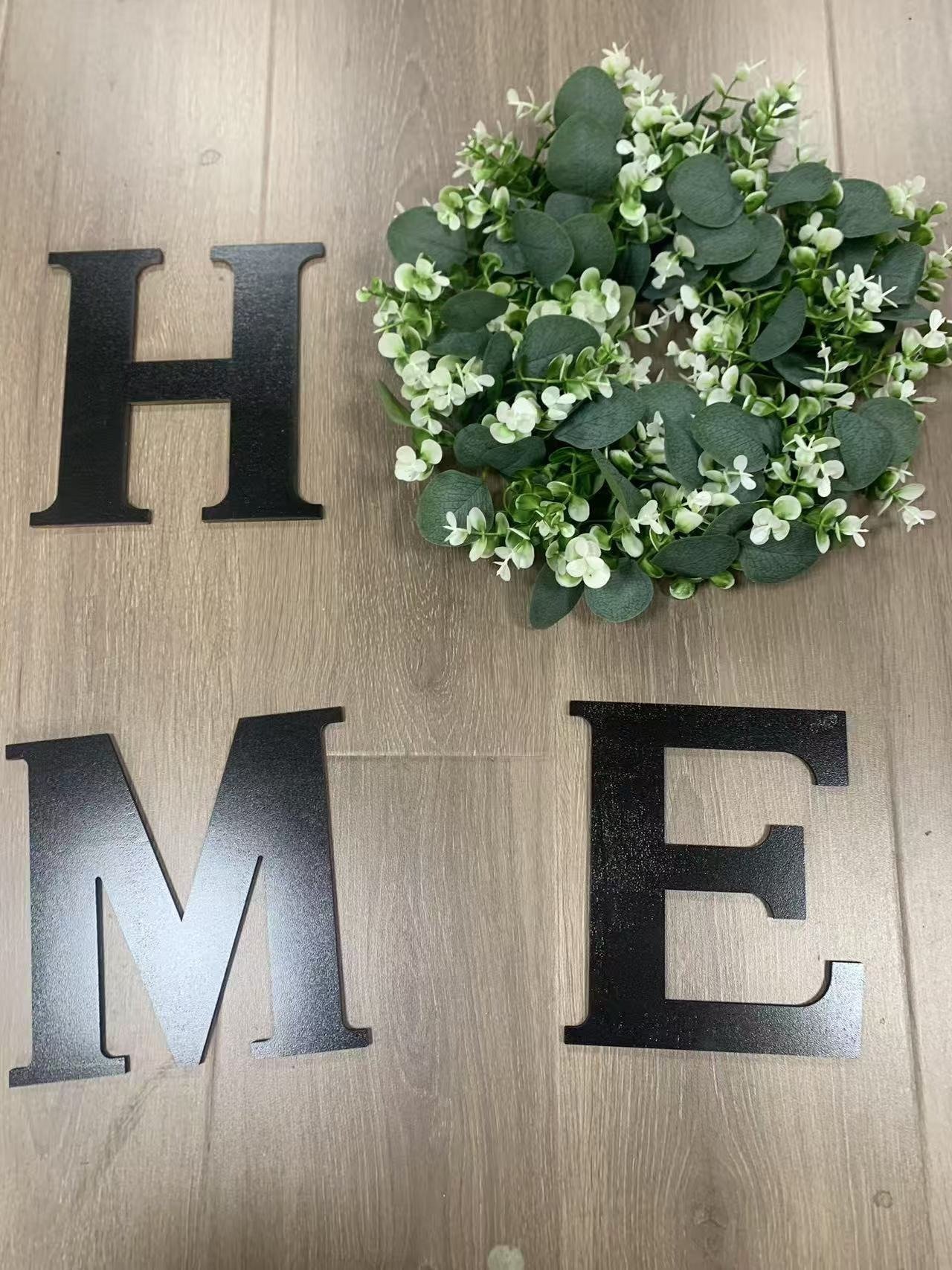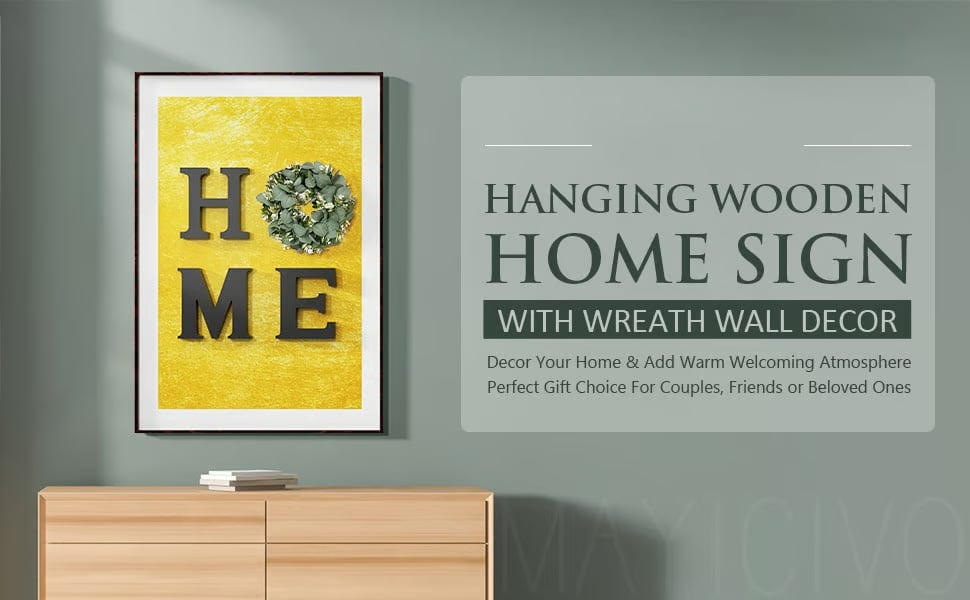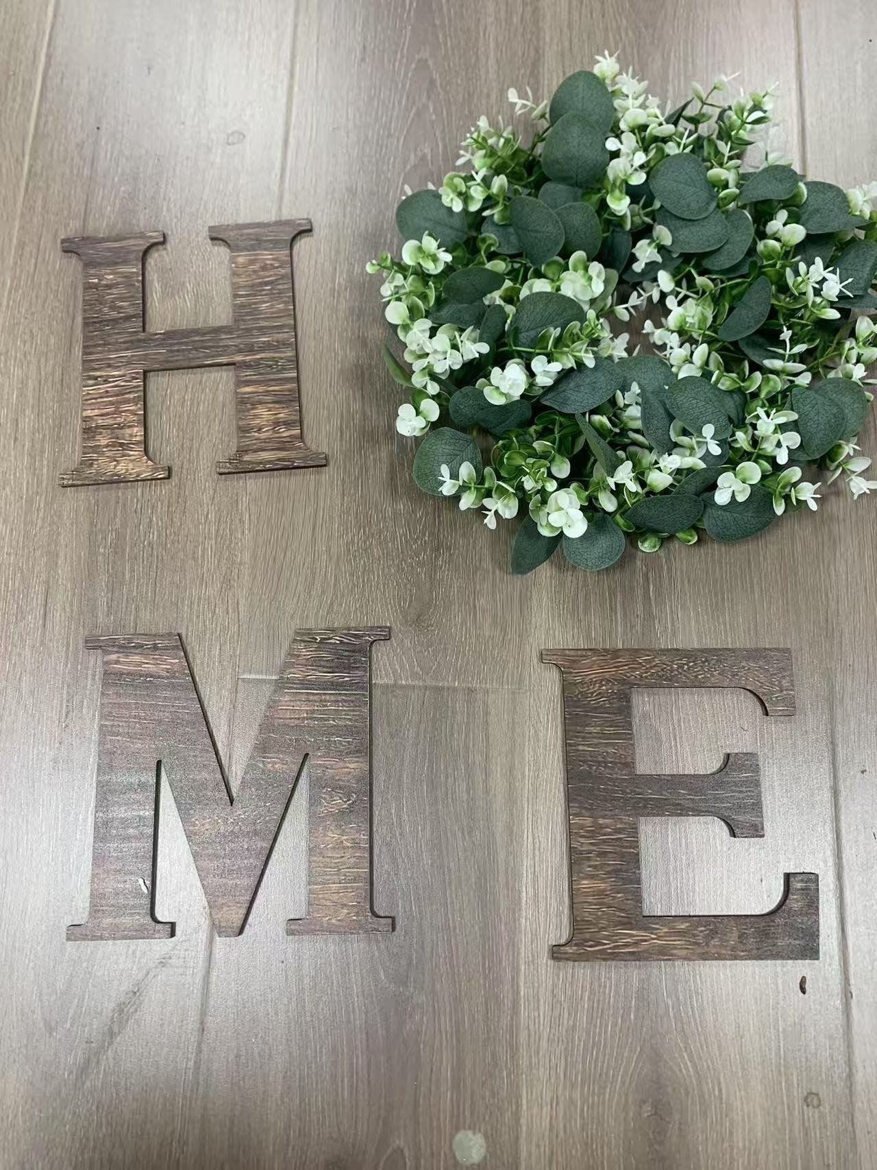 - HOME: The home wall sign decor comes with high-quality paulownia wood letters "H", "M", "E", and an artificial eucalyptus wreath for "O". The special design makes the home signs more beautiful and attractive.